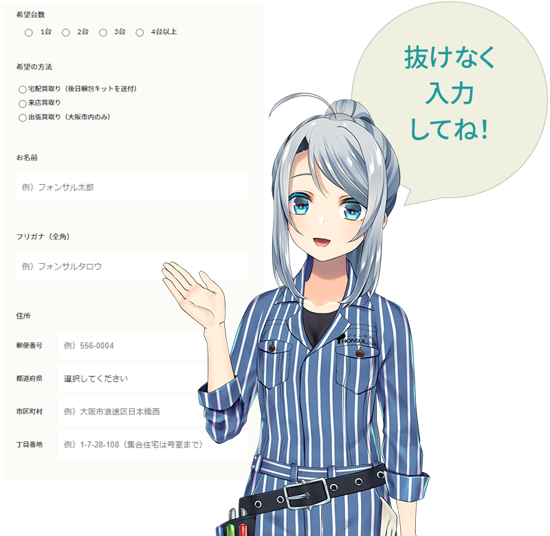 専用フォームよりお客様のご希望を当店へお知らせください。