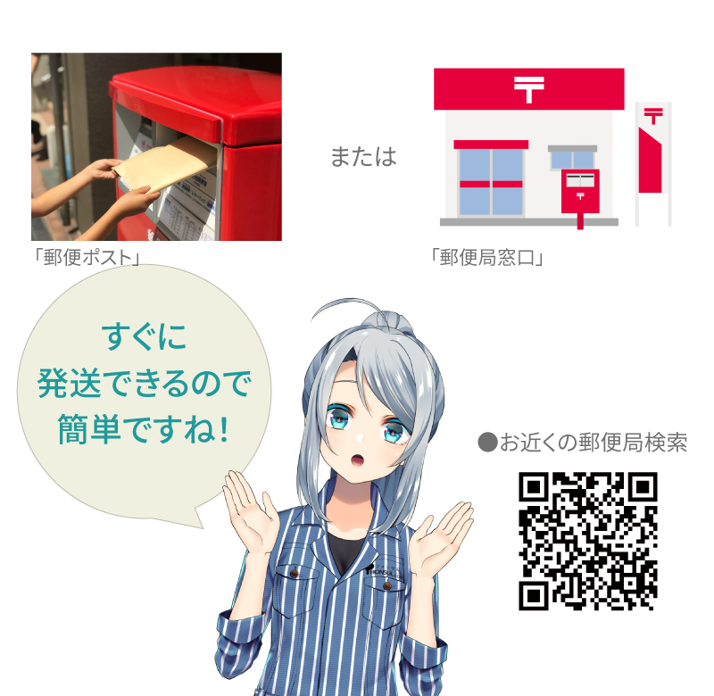 郵便ポストまたは郵便局窓口で発送