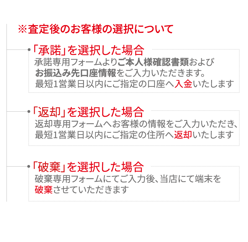 ※お申込み時のご住所と買取承諾後にアップロードいただくご本人様確認書類に記載されているご住所が相違している場合は、別途ご連絡をさせていただきます。