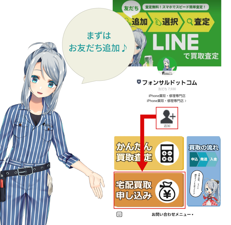 「友だち追加」→「トーク」→「お問い合わせメニュー」の【宅配買取申し込み】からお申込みできます!