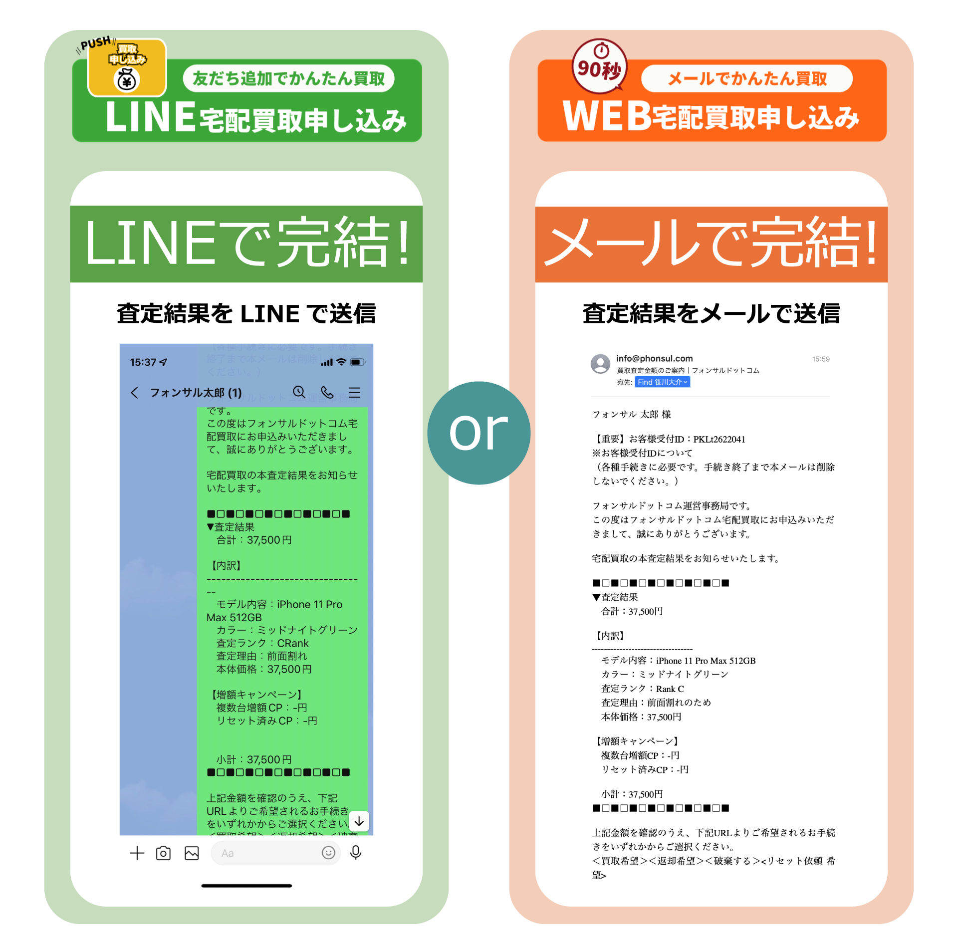 査定結果はすぐにメールで送られ、その結果を元に買取を承諾/返品/破棄を選択できます