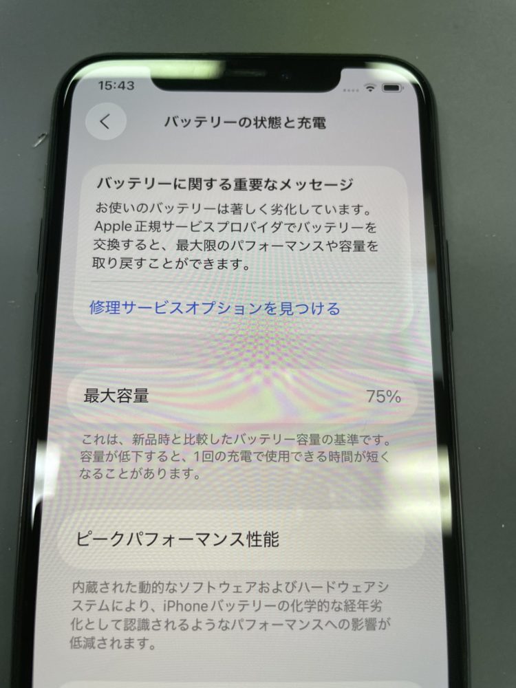バッテリーは充電と放電を繰り返すことで劣化し、最大容量が80%未満になると交換が推奨されます。バッテリーの最大容量を「設定」アプリの「バッテリー」から確認して、交換時期のご参考に💁♀️